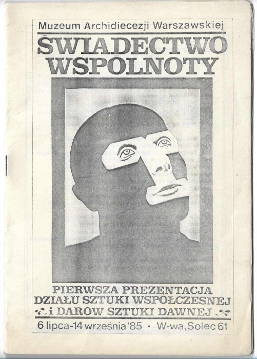 Świadectwo wspólnoty, Pierwsza Prezentacja Działu Sztuki Współczesnej i Darów Sztuki Dawnej; druk towarzyszący wystawie, Muzeum Archidiecezji Warszawskiej, Warszawa 1985